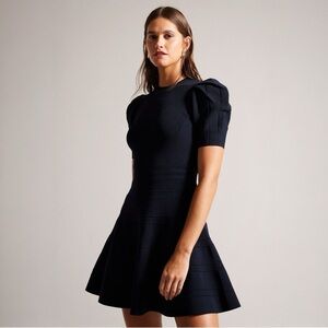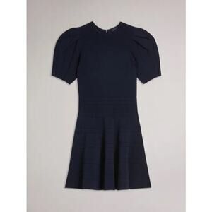 NWT Ted Baker London Navy Velvey Puff Sleeve Women's Dress Size 0