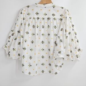 Anthropologie Lisabetta Blouse White Print Cotton Billow Sleeve Button
