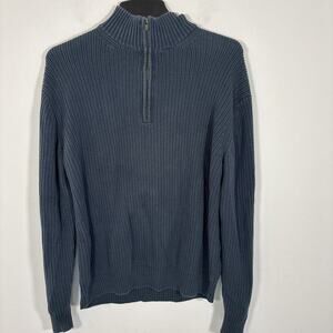 Calvin Klein Ribbed Sweater Mens XL Navy Blue 100% Cotton 1/4 Zip Mock Neck