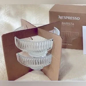 Set of two elegant dessert bowls from the Barista Collection. These clear glass bowls are perfect for serving ice cream or cold desserts.