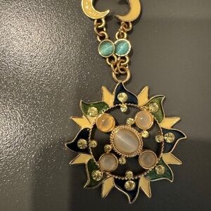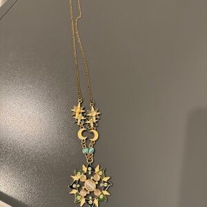 1. Moon and star pendant with faux cabochon stones and enamel insets. Pullover style, approximately 18 inches long.