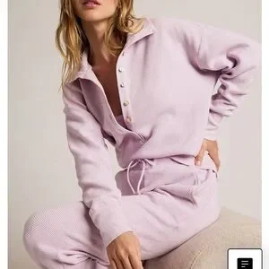 Relax in style with this cozy lavender waffle knit top. Perfect for a comfortable night in or casual day out. See other listings for matching pants.