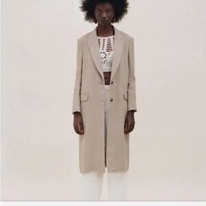 Chic and versatile linen trench coat by Zara. Light beige. Features a classic design with button closure. Ideal for layering.
