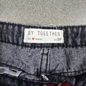 Stylish black distressed women shorts by By Together. Features a unique design with frayed edges and button details. Perfect for a casual, trendy look.