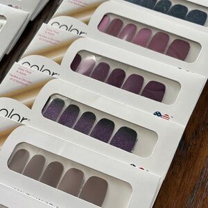 Diverse set of Color Street nail strips. Includes bold and subtle shades. Easy to apply and long-lasting. 31 sets in original packaging (some have stylist stickers on the front). 7 “naked” sets in the original, unopened sleeve without cardboard packaging.