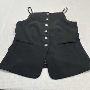 Christian Lacroix Top Womens 8 Black Crepe Strappy Vest Button Front Classic