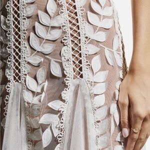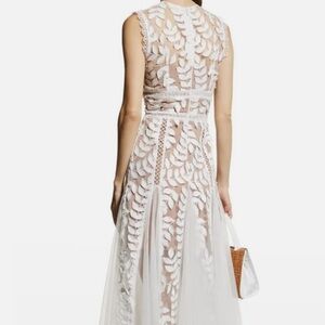 Bronx & Banco Saba Blanc Appliqué Midi Dress - White Lace, Size 6