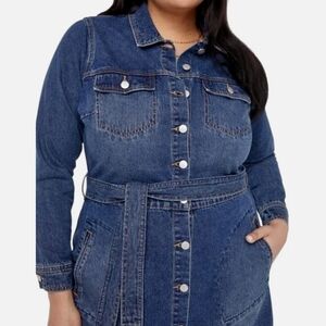 JUST FAB DARK WASH BELTED BUTTON UP DENIM JACKET DRESS