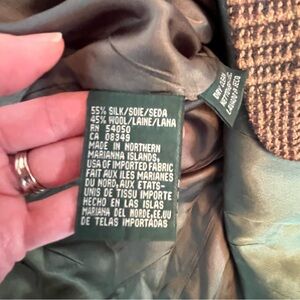 Lauren Ralph Lauren Wool Silk Tweed Blend Brown Plaid Blazer Equestrian Size 10