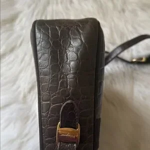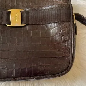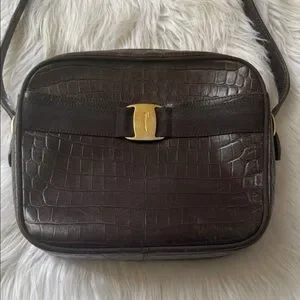 Salvatore Ferragamo Vara Brown Embossed Leather Designer Shoulder/ Crossbody Bag