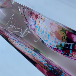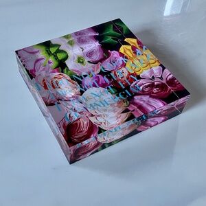 This BEAUTIFUL acrylic trinket tray/ashtray with an image of flowers bears the Ashley Longshore signature along the side, along with the mantra: