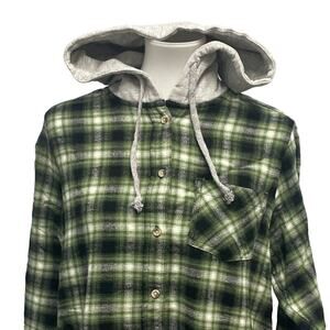 New Time and Tru Womens Large Long Sleeve Plaid Flannel Cotton Blend Hoodie