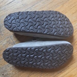 Stylish gray suede clogs with a comfortable design. Perfect for casual wear.