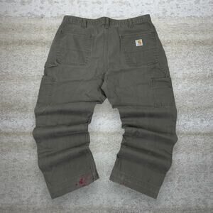Vintage 90s Carhartt Carpenter Pants 38x28 Baggy Fit Dark Green Canvas Painters