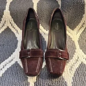 AEROSOLES Brown Suede Heels with Buckle