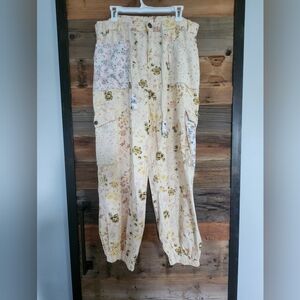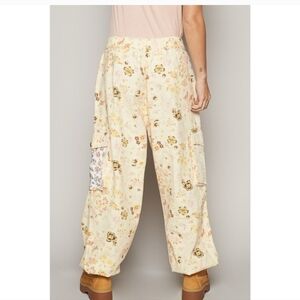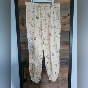 NWOT POL Natural Cream Floral Print Patched Cotton Cargo Joggers Size LARGE