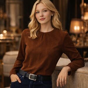 The Italian suede is so soft and the shirt has a built in silk blend camisole. This retails for over $5,000. The size tag says 40 and I’m estimating that as a medium. Measurements are shown in pics.