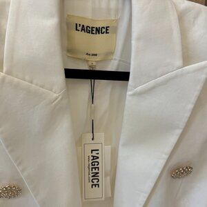 White fine cotton cropped blazer with rhinestone buttons. Brand new with tags.