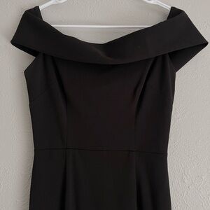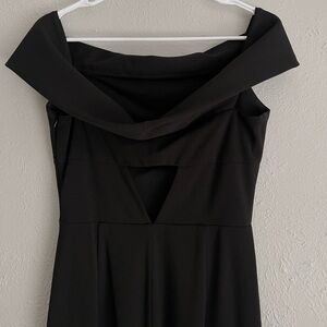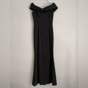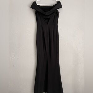 Gorgeous Katie May Legacy off-shoulder black bodycon gown. Structured and comfortable crepe material that stretches. In good preowned condition.