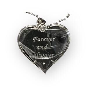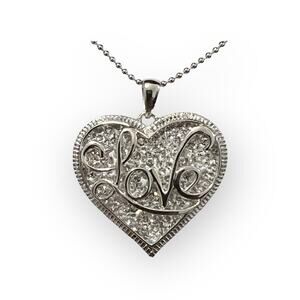 Love is always in the air with this unique pendant! Round-cut white crystals are pave-set beneath a sterling silver-crafted 'Love' overlay; this sterling silver pendant is inscribed with 'Forever and always' on the reverse for a special memento close to your heart.