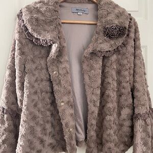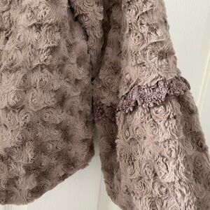 This super fluffy soft cardigan feels like fur and takes you to a Victoria tea garden ready. Can be worn button up or open. Wore once. Fully lined and beautiful quality workmanship.
