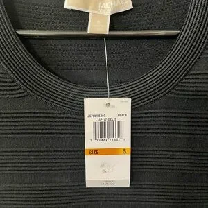 Chic black mini dress by Michael Kors. Features a textured design with short sleeves. Perfect for stylish outings. This will work for any occasion.