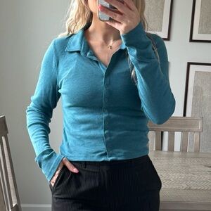 Teal Long Sleeve Button-Up Top