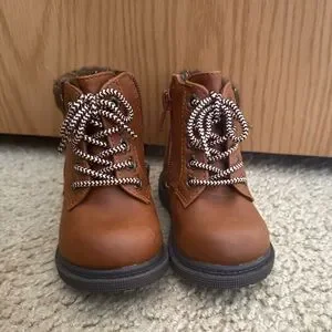 Keep little feet warm and stylish this season with these Wonder Nation tan faux-leather kids boots in Size 5. Featuring cozy lining, sturdy soles, and cute two-tone laces, these boots are perfect for everyday wear, holiday outfits, and winter adventures.