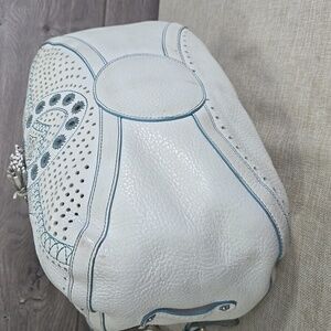 Cole Haan Kayla White Embellished Leather Satchel Shoulder Bag.