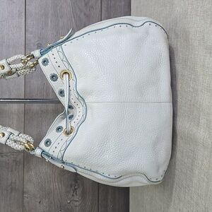 Cole Haan Kayla White Embellished Leather Satchel Shoulder Bag Tote Satchel