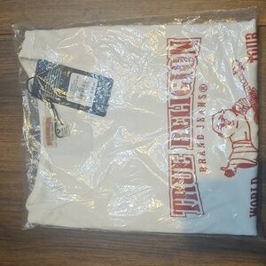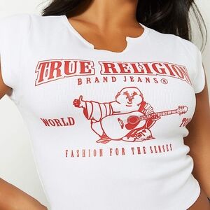 TRUE RELIGION LOGO NOTCH CROP RIBBED TEE OPTIC WHITE SIZE XXL