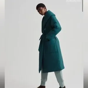 Varley Ana Long Wrap Puffer Coat — Coniser color— NWT — S/M