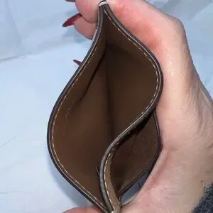 Coach Slim Card Holder Wallet Beige Leather Pink Lips Logo Signature