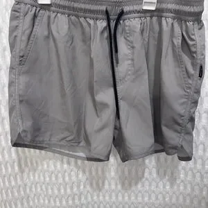 Elevate your workout with these stylish gray athletic shorts. Designed for comfort and performance. Gray with black liner. 4” inseam. Great for workouts or swim!
