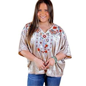 Savanna Jane Forever Wanted Floral Embroidered Crushed Velvet Boxy Top S / M