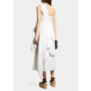 Make a jaw-dropping appearance wherever you go dressed in this extraordinary Sori tiered cotton one-shoulder dress by Cinq A Sept. Made out of white crisp cotton featuring an A-line midi cut, asymmetric neckline, sleeveless cut, shirred bodice for a figure-fitted look, Tiered flowy midi skirt, and draped back detailing for extra oomph. Style with some high heels and statement jewelry for a look that will not go unnoticed.