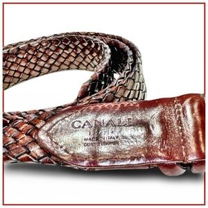 Canali Men’s Tubular Braided Leather Belt. Mud. 51”