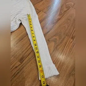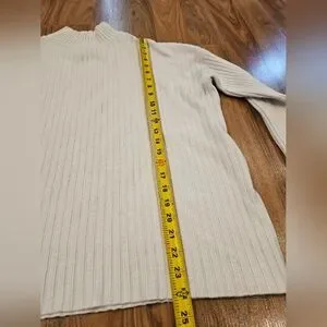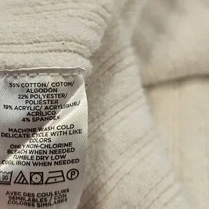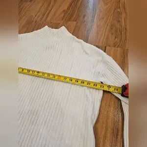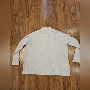Stay cozy and stylish with this elegant white sweater. Perfect for any occasion, it offers a timeless look and comfortable oversized fit. Could fit size small to size large. The fabric has some stretch to it. In fair used condition.