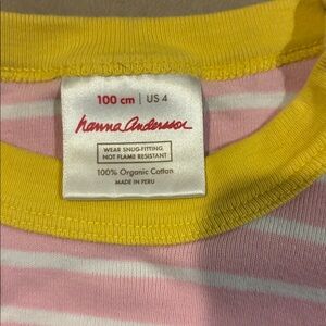 Charming pink striped pajamas with a playful bunny design. Soft and comfortable for bedtime. Organic Cotton. Top and Shorts bottom. -size 4 or 100 cm Lightly used & no stains