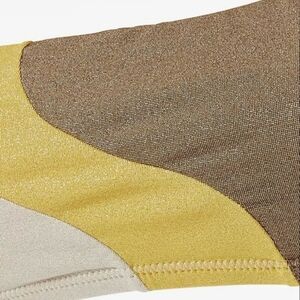 This gorgeous PQ Swim top features a unique design with a beautiful metallic shimmer. PQ Swim's Luna Wave top is cut from lurex fabric that will shimmer beautifully in the sunlight. The bandeau-style top is fitted with slender ties so it's easily adjusted to the perfect fit, and has a tri-colour wave sweeping across the fabric. Pair with the matching bikini bottoms and glossy gold jewellery. Bandeau style with spaghetti straps that tie in the back. Looks great paired with the Haven Wave bottoms!