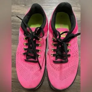 nike flex running shoes. They are used but in very good condition Color pink green white and black. No box just shoes!