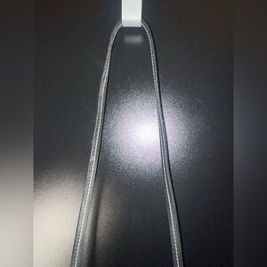Sleek black crossbody bag. Features brown accents. Iconic logo detail.