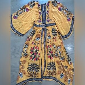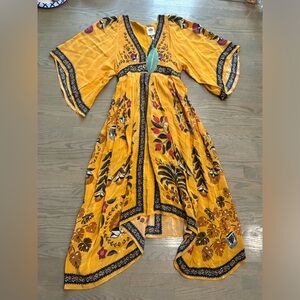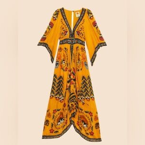 NEW FARM RIO tropical tapestry kaftan dress in yellow New with tags