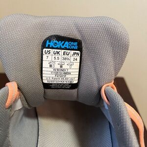 Hoka One Bondi 7 - Harbor Mist/Coral Running Shoes - Women size 7