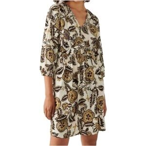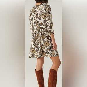 The VOLVER short dress is right on trend. This bohemian-inspired style has a delicate floral print and a V-neck for a gorgeous feminine feel. We love the flattering details such as the inverse V-shaped belt and the waist gathers. This dress is light and lovely to wear in any season. In the winter, pair it with high-heeled boots for a chic and elegant effect.