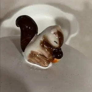 Charming white ceramic casserole dish featuring a squirrel handle. Perfect for serving and kitchen decor.