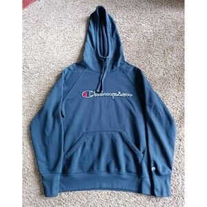 Champion Hoodie Men’s Medium Embroidered Reverse Weave Blue Long Sleeve