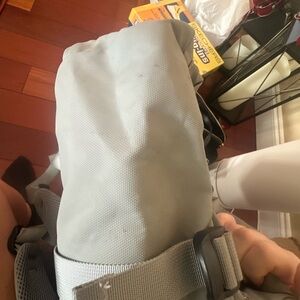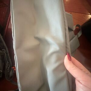 This light gray backpack is in good used condition with minor wear, including a few small marks and light scuffs shown in the photos. All straps and hardware are fully functional, and the material is still sturdy. A simple, lightweight, and practical bag with plenty of life left.
