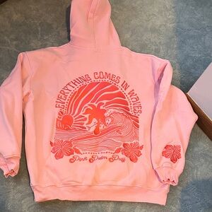Women's Light Pink Hoodie with Red Palm Design