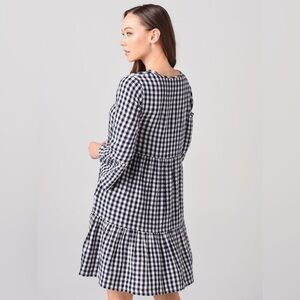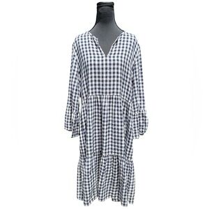 Hartford NWOT Rain Woven Dress, Blue Gingham, French Size 3 Large, Bell Sleeves